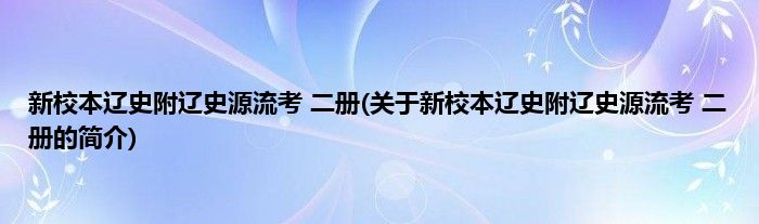 最佳答案大家好,新校本辽史附辽史源流考 二册,关于新校本辽史附辽史源流考 二册的简介很多人还不知道,现在让我们一起来看看吧! 1、 《新校本辽史附辽史源流考(二册)》是鼎文書局出版的图书。2、作者是楊家駱主編 。本文关于新校本辽史附辽史源流考 二册的简介就讲解完毕,希望对大家有所帮助。