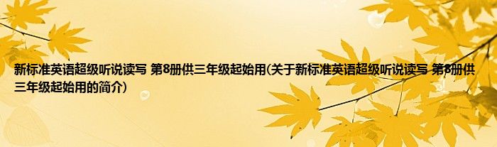 新标准英语超级听说读写第8册供三年级起始用(关于新标准英语超级听说读写第8册供三...