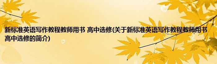 1、 《新标准英语写作教程教师用书(高中选修)》是2005年外语教学与研究出版社出版的图书。