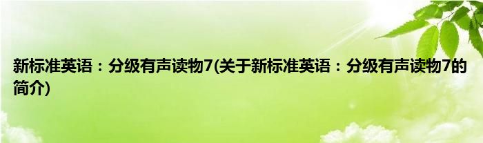 本文关于新标准英语:分级有声读物7的简介就讲解完毕,希望对大家有所帮助。