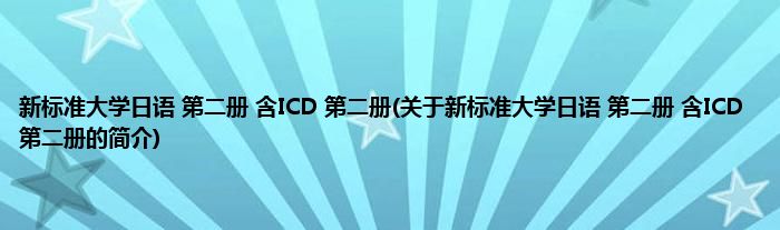 本文关于新标准大学日语 第二册 含ICD 第二册的简介就讲解完毕,希望对大家有所帮助。