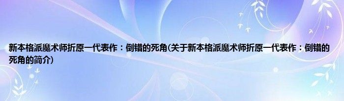 本文关于新本格派魔术师折原一代表作:倒错的死角的简介就讲解完毕,希望对大家有所帮助。