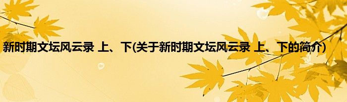 本文关于新时期文坛风云录 上、下的简介就讲解完毕,希望对大家有所帮助。