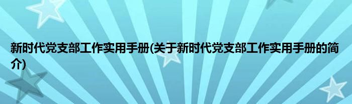 本文关于新时代党支部工作实用手册的简介就讲解完毕,希望对大家有所帮助。