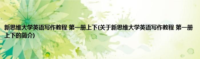 大家好,新思维大学英语写作教程 第一册上下,关于新思维大学英语写作教程 第一册上下的简介很多人还不知道,现在让我们一起来看看吧!
