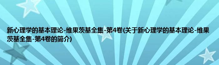 本文关于新心理学的基本理论-维果茨基全集-第4卷的简介就讲解完毕,希望对大家有所帮助。