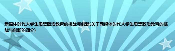 本文关于新媒体时代大学生思想政治教育的挑战与创新的简介就讲解完毕,希望对大家有所帮助。