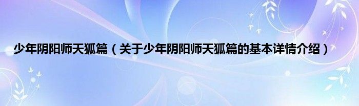 本文关于少年阴阳师天狐篇的基本详情介绍就讲解完毕,希望对大家有所帮助。
