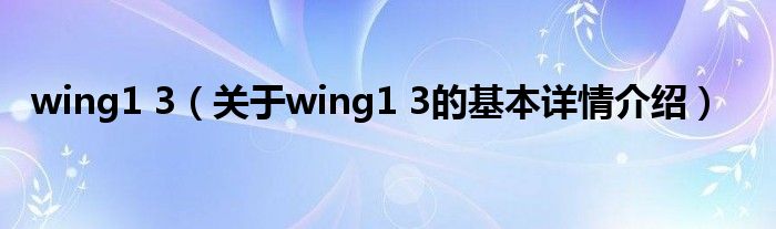 wing1 3(关于wing1 3的基本详情介绍)
