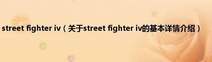 streetfighteriv(关于streetfighteriv的基本详情介绍...