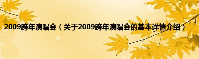 本文关于2009跨年演唱会的基本详情介绍就讲解完毕,希望对大家有所帮助。