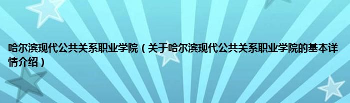 本文关于哈尔滨现代公共关系职业学院的基本详情介绍就讲解完毕,希望对大家有所帮助。