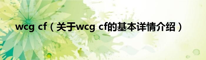 本文关于wcg cf的基本详情介绍就讲解完毕,希望对大家有所帮助。