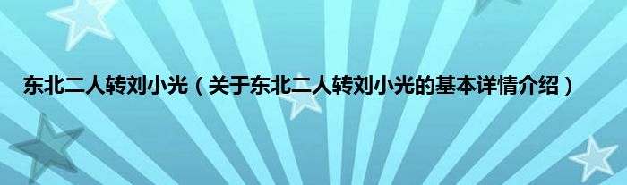 本文关于东北二人转刘小光的基本详情介绍就讲解完毕,希望对大家有所帮助。