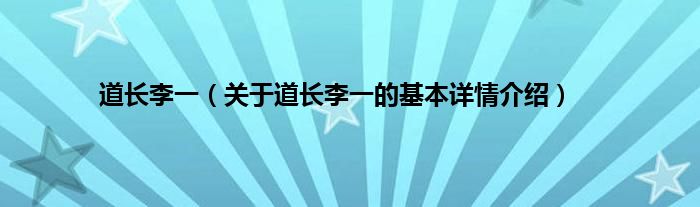 本文关于道长李一的基本详情介绍就讲解完毕,希望对大家有所帮助。