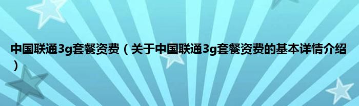 本文关于中国联通3g套餐资费的基本详情介绍就讲解完毕,希望对大家有所帮助。