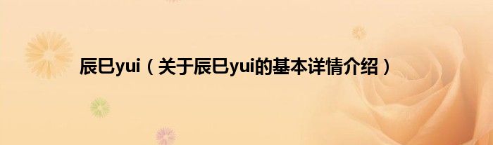 本文关于辰巳yui的基本详情介绍就讲解完毕,希望对大家有所帮助。
