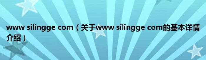 本文关于www silingge com的基本详情介绍就讲解完毕,希望对大家有所帮助。