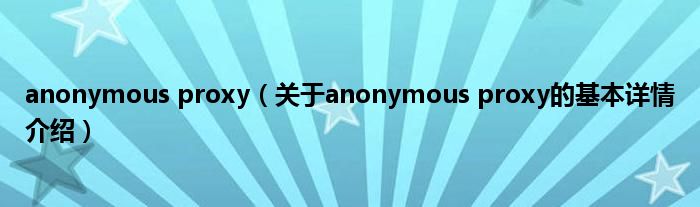 本文关于anonymous proxy的基本详情介绍就讲解完毕,希望对大家有所帮助。