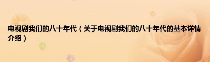 本文关于电视剧我们的八十年代的基本详情介绍就讲解完毕,希望对大家有所帮助。