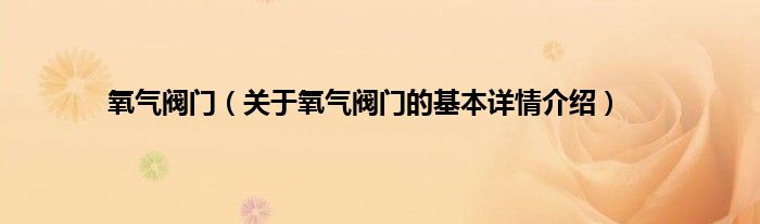 本文关于氧气阀门的基本详情介绍就讲解完毕,希望对大家有所帮助。