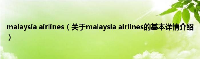 本文关于malaysia airlines的基本详情介绍就讲解完毕,希望对大家有所帮助。