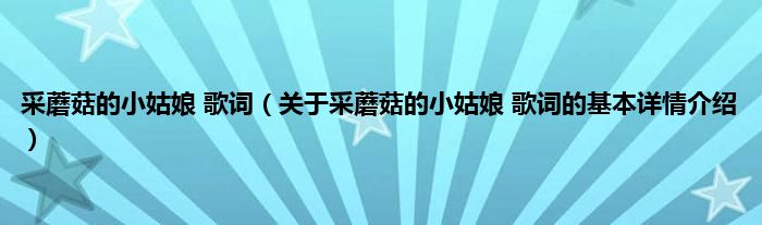 本文关于采蘑菇的小姑娘 歌词的基本详情介绍就讲解完毕,希望对大家有所帮助。
