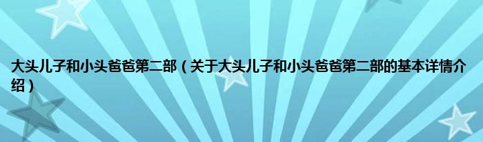 本文关于大头儿子和小头爸爸第二部的基本详情介绍就讲解完毕,希望对大家有所帮助。