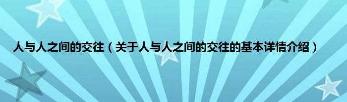 人与人之间的交往(关于人与人之间的交往的基本详情介绍)