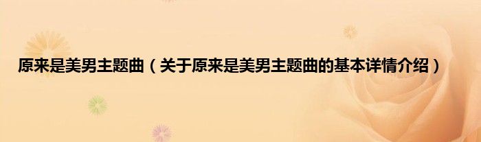 本文关于原来是美男主题曲的基本详情介绍就讲解完毕,希望对大家有所帮助。