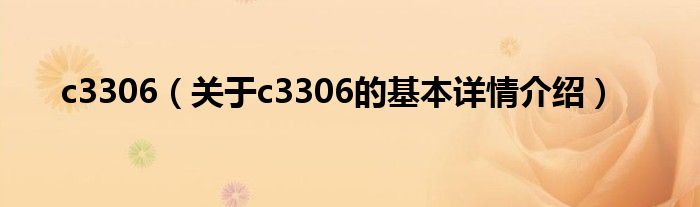 本文关于c3306的基本详情介绍就讲解完毕,希望对大家有所帮助。