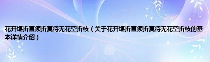 花开堪折直须折莫待无花空折枝(关于花开堪折直须折莫待无花空折枝的基本详情介绍)