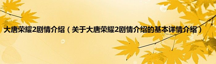 本文关于大唐荣耀2剧情介绍的基本详情介绍就讲解完毕,希望对大家有所帮助。
