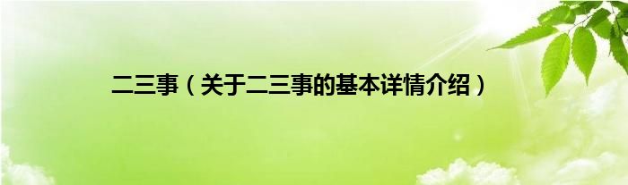 本文关于二三事的基本详情介绍就讲解完毕,希望对大家有所帮助。