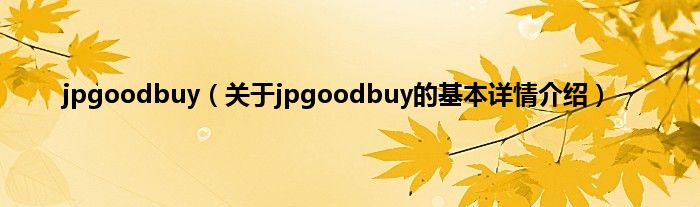 本文关于jpgoodbuy的基本详情介绍就讲解完毕,希望对大家有所帮助。