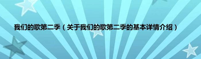 本文关于我们的歌第二季的基本详情介绍就讲解完毕,希望对大家有所帮助。