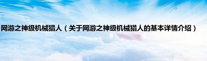 本文关于网游之神级机械猎人的基本详情介绍就讲解完毕,希望对大家有所帮助。