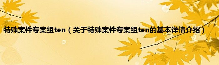 本文关于特殊案件专案组ten的基本详情介绍就讲解完毕,希望对大家有所帮助。