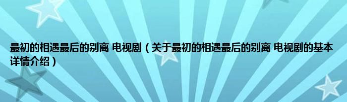 最初的相遇最后的别离 电视剧(关于最初的相遇最后的别离 电视剧的基本详情介绍)