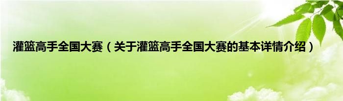 本文关于灌篮高手全国大赛的基本详情介绍就讲解完毕,希望对大家有所帮助。