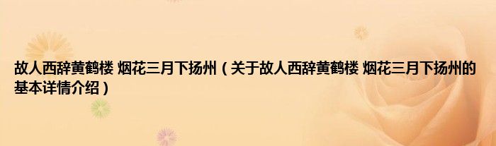 本文关于故人西辞黄鹤楼 烟花三月下扬州的基本详情介绍就讲解完毕,希望对大家有所帮助。