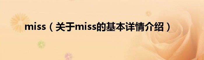 miss(关于miss的基本详情介绍)