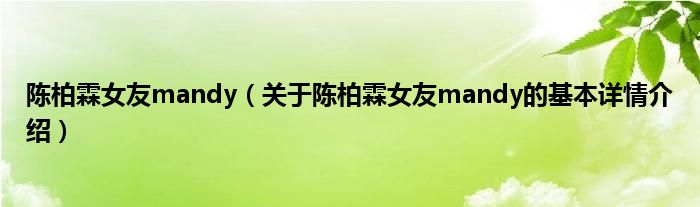 本文关于陈柏霖女友mandy的基本详情介绍就讲解完毕,希望对大家有所帮助。