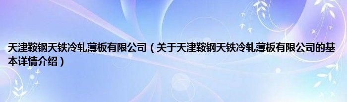 本文关于天津鞍钢天铁冷轧薄板有限公司的基本详情介绍就讲解完毕,希望对大家有所帮助。