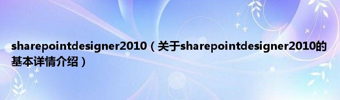 本文关于sharepointdesigner2010的基本详情介绍就讲解完毕,希望对大家有所帮助。