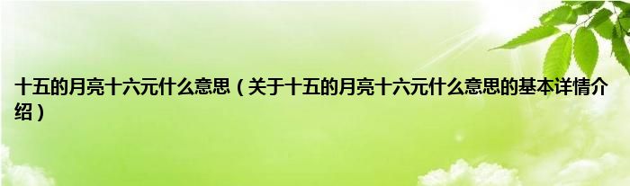 本文关于十五的月亮十六元什么意思的基本详情介绍就讲解完毕,希望对大家有所帮助。