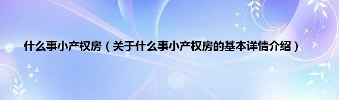 本文关于什么事小产权房的基本详情介绍就讲解完毕,希望对大家有所帮助。