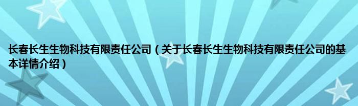 本文关于长春长生生物科技有限责任公司的基本详情介绍就讲解完毕,希望对大家有所帮助。