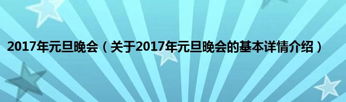 2017年元旦晚会(关于2017年元旦晚会的基本详情介绍)