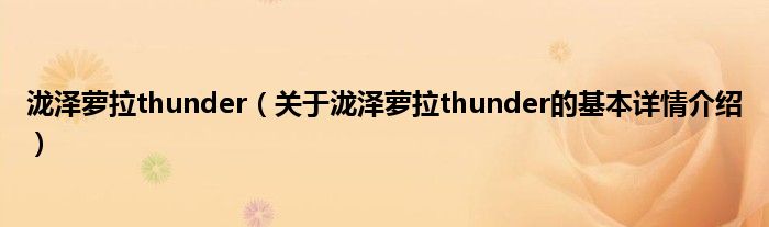 本文关于泷泽萝拉thunder的基本详情介绍就讲解完毕,希望对大家有所帮助。